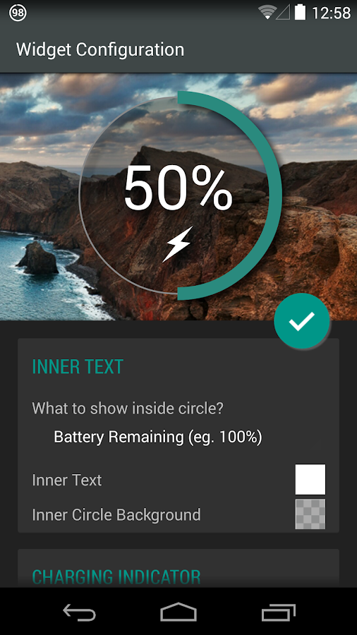 – Indicador de nivel de batería círculo encaja perfectamente diseño Android puro